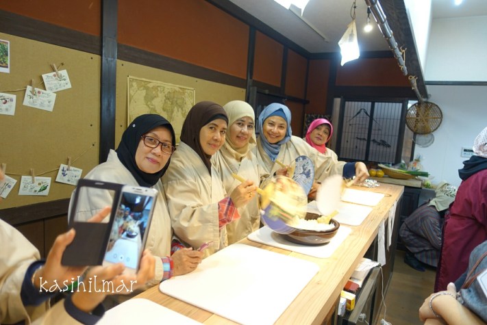 Awal pagi selepas sarapan, kami menanti kedatangan Midori dan jurubahasanya ke tempat penginapan kami untuk membawa kami ke Green Cooking Studio. Hari itu kami belajar buat sushi rice & sushi, sayur dengan sos egoma, sup miso dll. Bayaran seorang adalah lebihkurang RM240.