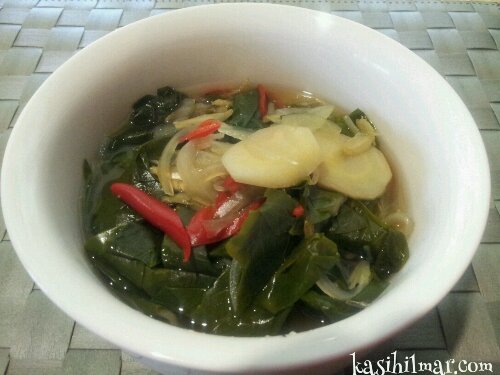 Bila rebus daun belinjau, saya suka masukkan lengkuas, bawang putih, bawang merah, ikan bilis, cili merah dan lada hitam, sedap gitu.. 🙂