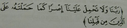 “Ya Tuhan kami, janganlah Engkau bebankan kepada kami beban yang berat sebagaimana Engkau bebankan kepada orang-orang yang sebelum kami”.