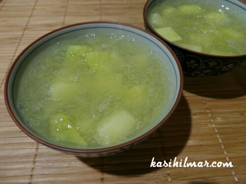 4) Masukkan honey dew yang dipotong kiub dan Kacau sekejap diatas api yang kecil dan akhir sekali masukkan garam secukup rasa.