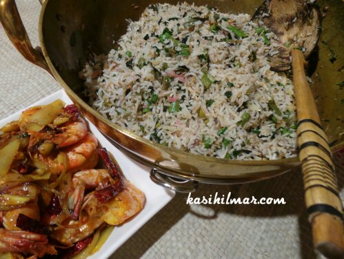 Biasanya bila goreng nasi kerabu, berbagai jenis ulam kita masukkan. Tapi semalam, saya masukkan juga kacang panjang supaya ada rasa kelainan sedikit. Memang sedap lagi-lagi bila menguyah kacang panjang tu, bunyi krup krap, krup krap, mmm…terasa kerangupannya, hehe…