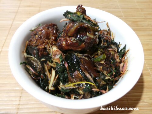 1) 1/2 ekor ayam kampung dipotong kecil, digaul kunyit dan garam