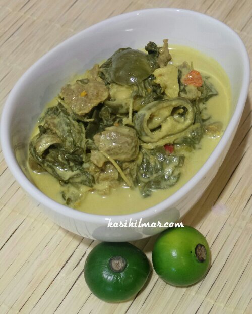 2) Kemudian masukkan daun tulsi dan buah cepu. Akhir sekali masukkan santan dan garam secukup rasa.