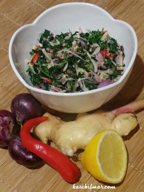 Oleh kerana daun ini pahit, saya suka lebihkan jus lemon supaya hidangan ini rasa sedikit masam.