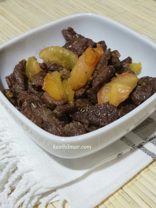 2) Panas sedikit minyak dan goreng daging sehingga hampir garing