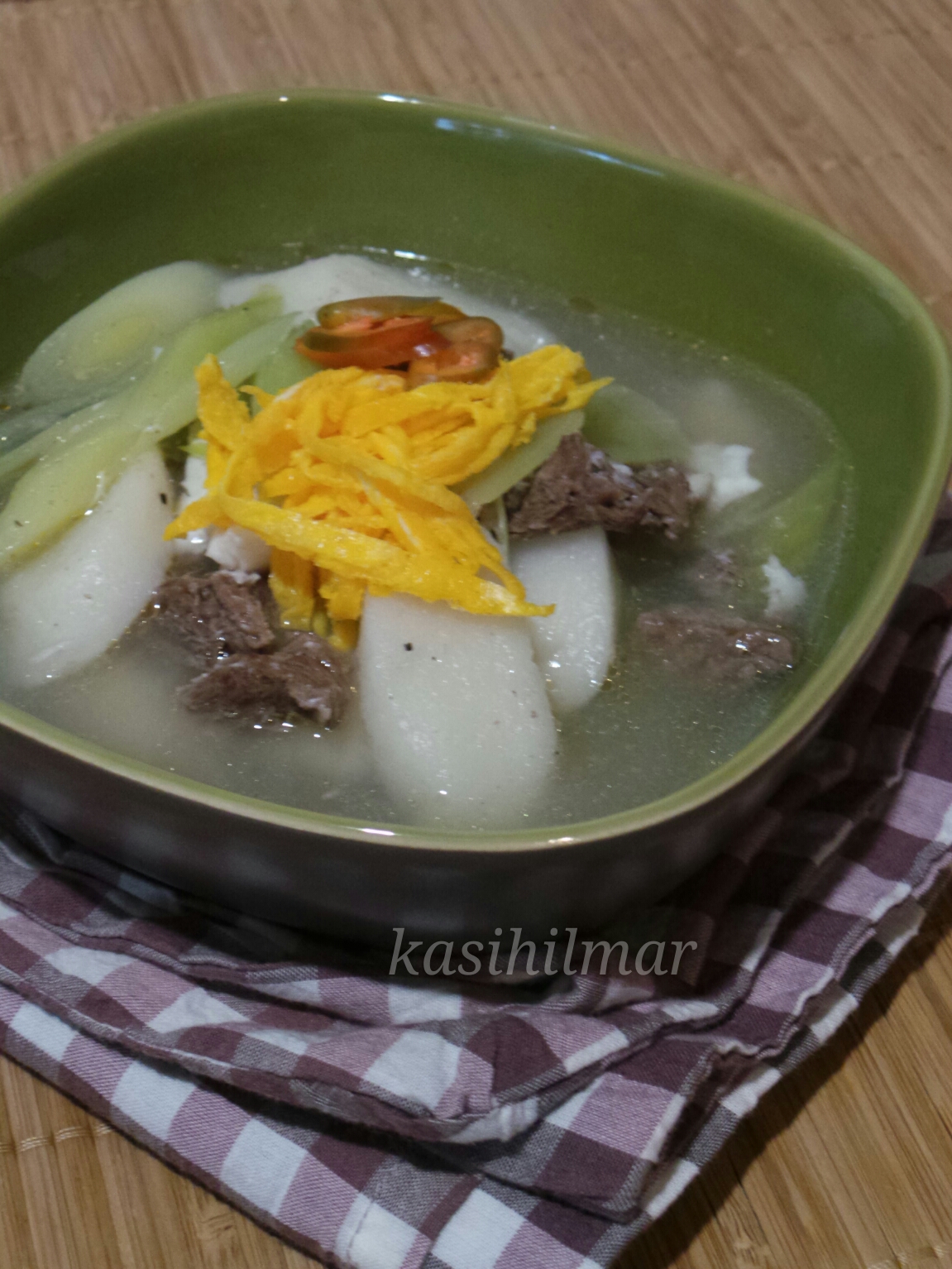Malam ini saya nak share satu resipi korea yang dipanggil tteokguk iaitu sup kek beras. Masakan yang mudah, campak semua bahan-bahan dan rebus. Tapi of course kena buat tteok dulu baru boleh masak tteokguk. Resipi tteok klik di sini. Hidangan ini perlu dimakan segera sebaik saja selesai dimasak sebab kalau dibiar lama tteok akan kembang. Resipi ini saya olah dari blog maangchi. Walaubagaimanapun saya tak dapat mengikut 100% kerana dirumah tiada sos ikan, daun bawang dan rumpai laut. Rasanya kalau ada semua bahan-bahan tu, mungkin tteokguk ini akan lebih sedap lagi. Tak ada pun sedap juga!