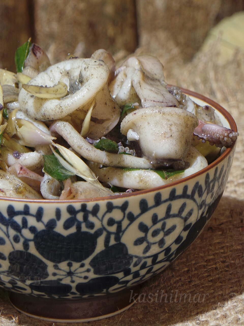 4) Jangan biarkan sotong lama di atas api, nanti sotong akan keras dan liat.