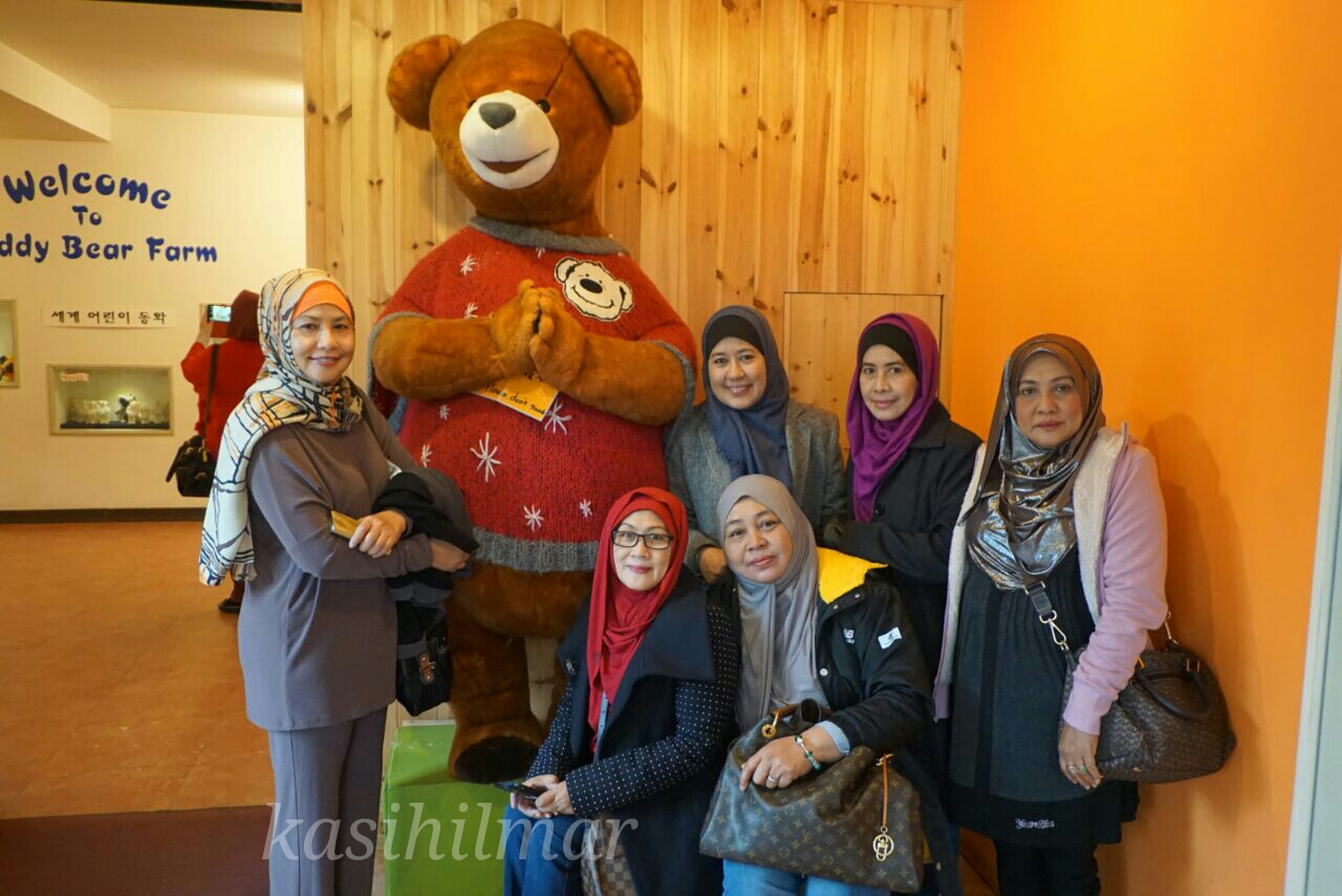 Diantara tempat yang kami singgah ialah di Teddy Bear Farm. Tempat ini memang sesuai kalau nak bawa anak-anak… budak-budak tentu suka tengok banyak teddy bear disitu.. kita yang dah berusia ini, ikut je lah bila dibawa. Kemudian kami ke kimchi school dimana kami juga diberi peluang mengenakan pakaian tradisional Korea ‘Han Bok’.