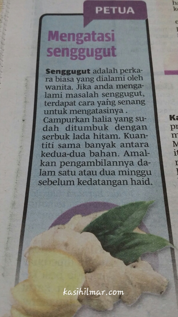 Di bawah adalah petua dari akhbar Berita Harian mengenai cara mengatasi senggugut…