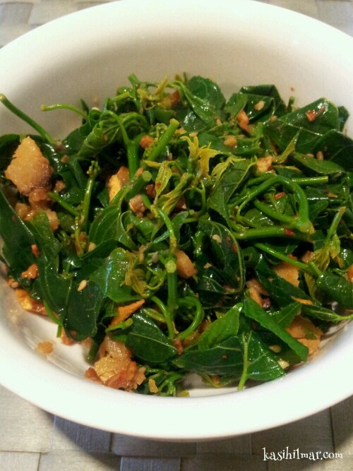 1) 1 mangkuk pucuk peria pantai yang telah dicelur dan ditoskan.