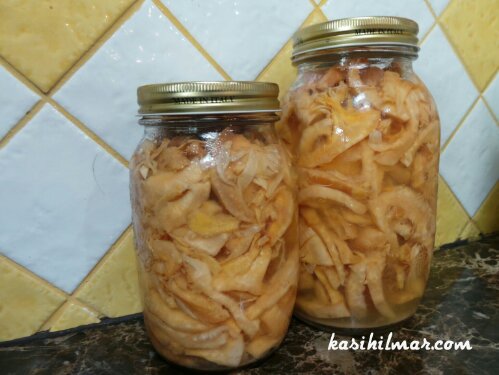Dua hari sebelum ramadhan saya buat jeruk kulit cempedak ataupun disebut mandai. Ini adalah kali kedua saya membuatnya. Kali pertama saya cuma bubuh air dan garam sahaja dan saya dapati rasanya kurang enak jika dibandingkan dengan menambah cuka epal. Selepas seminggu barulah sedap mandai ini digoreng.