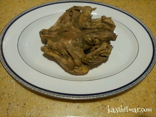 2) Bahan yang ditumbuk dilumurkan pada ayam dan perap selama 1 jam.