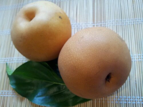 1) 2 biji pear. Dikupas dan dipotong sederhana besar