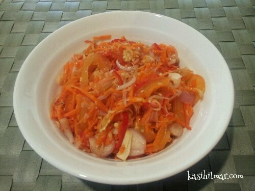 Bercakap tentang bawang dan madu, teringat saya, semalam saya juga mengambil bawang dan madu tetapi di dalam salad carrot… 🙂 So this carrot salad is a healthy dish and tasty!